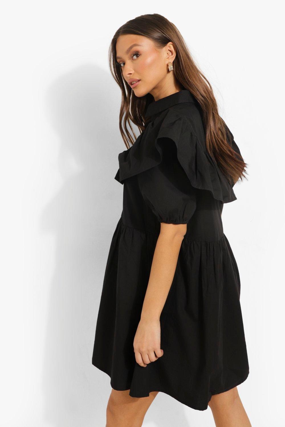 Boohoo black ruffle store dress