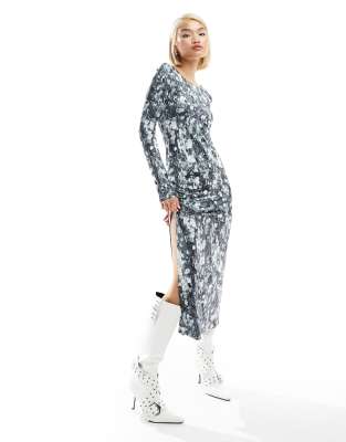 Vesper bandeau midi dress store with thigh split in stone
