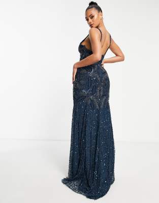 Quiz navy store embellished maxi dress