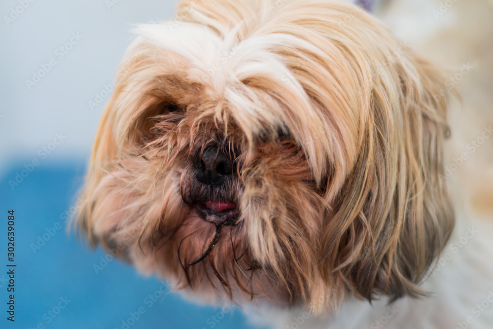 Dog with store hair in face