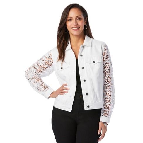 Denim jacket store with lace sleeves