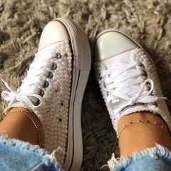 Tenis all star store branco com perola