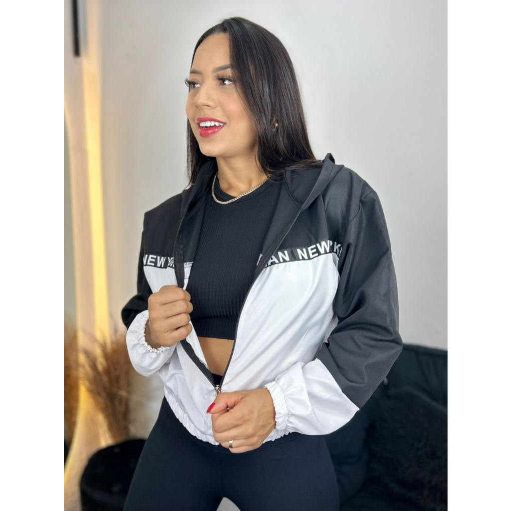 Blusa corta store vento com capuz