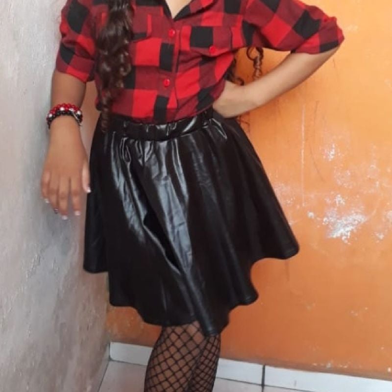 Product Item: Blusa xadrez com store saia de couro