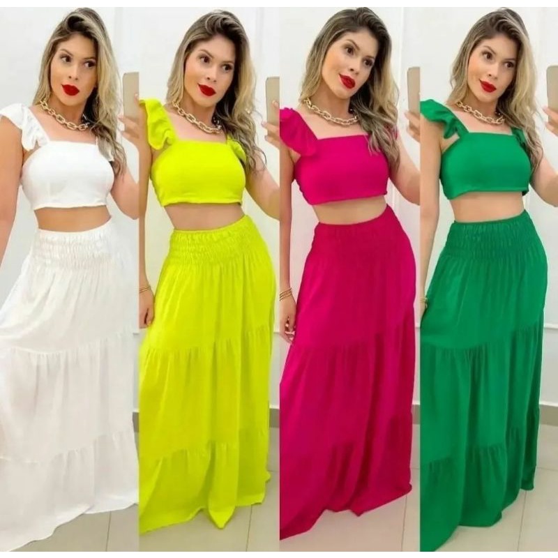 Product Item: Saia longa store com blusa curta