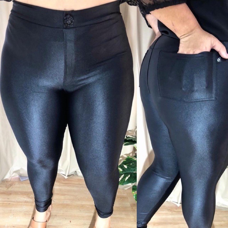 Calça imitação store de couro feminina