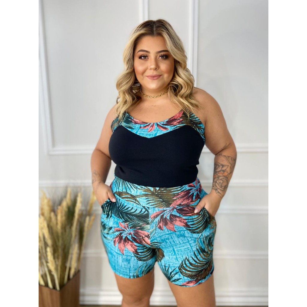 Conjunto blusa e store short plus size