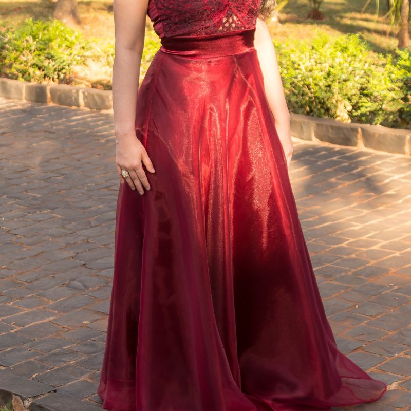 Product Item: Vestido longo vermelho store bordo