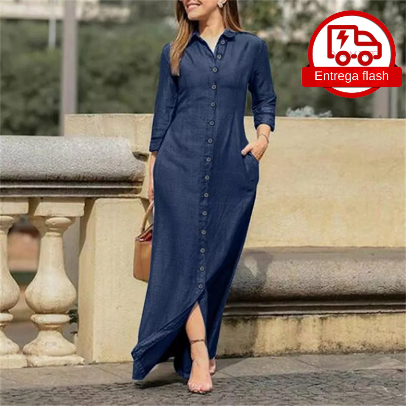 Product Item: Vestido longo store com camisa jeans