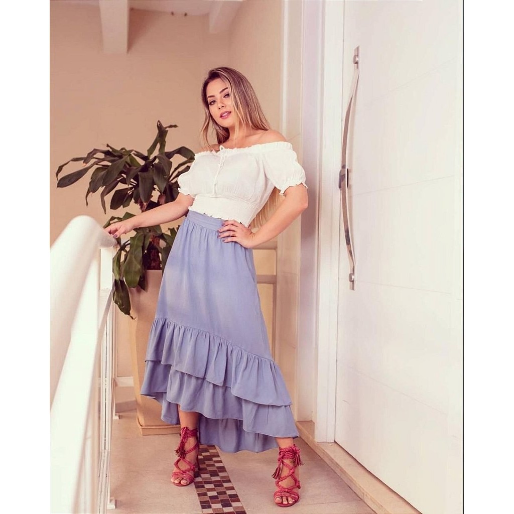 Saia de store viscose com babado