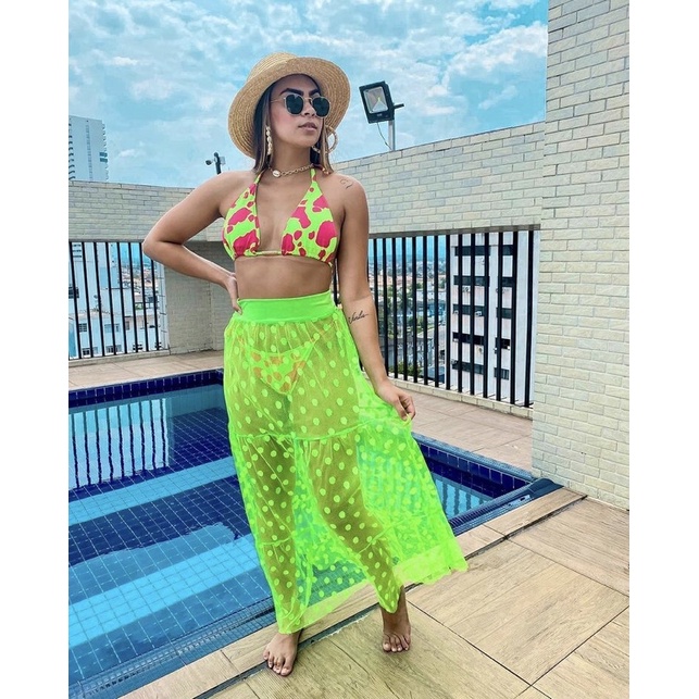 Saida de store praia transparente longa