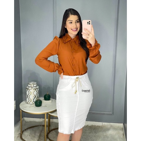 Saia jeans store branca com botoes