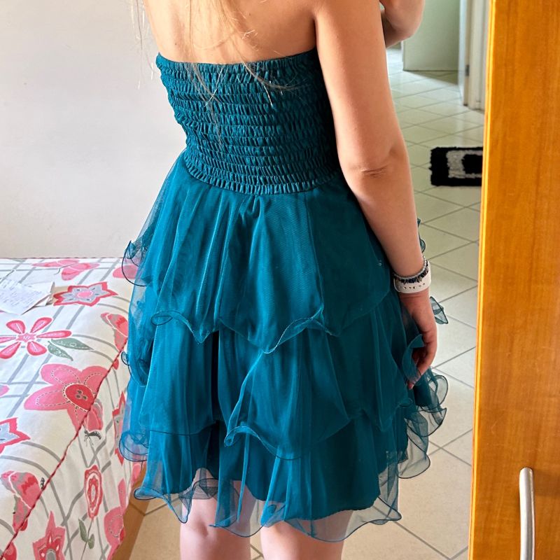Product Item: Vestido azul petroleo store curto