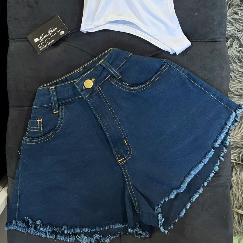 Shorts jeans store largo nas pernas