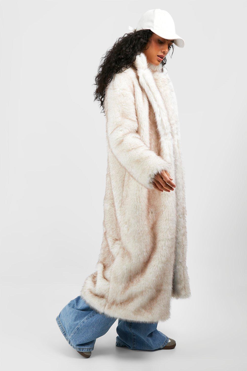 Excelled faux fur maxi coat store with hood