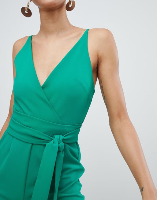 Asos design wrap front jumpsuit store with peg leg and self belt